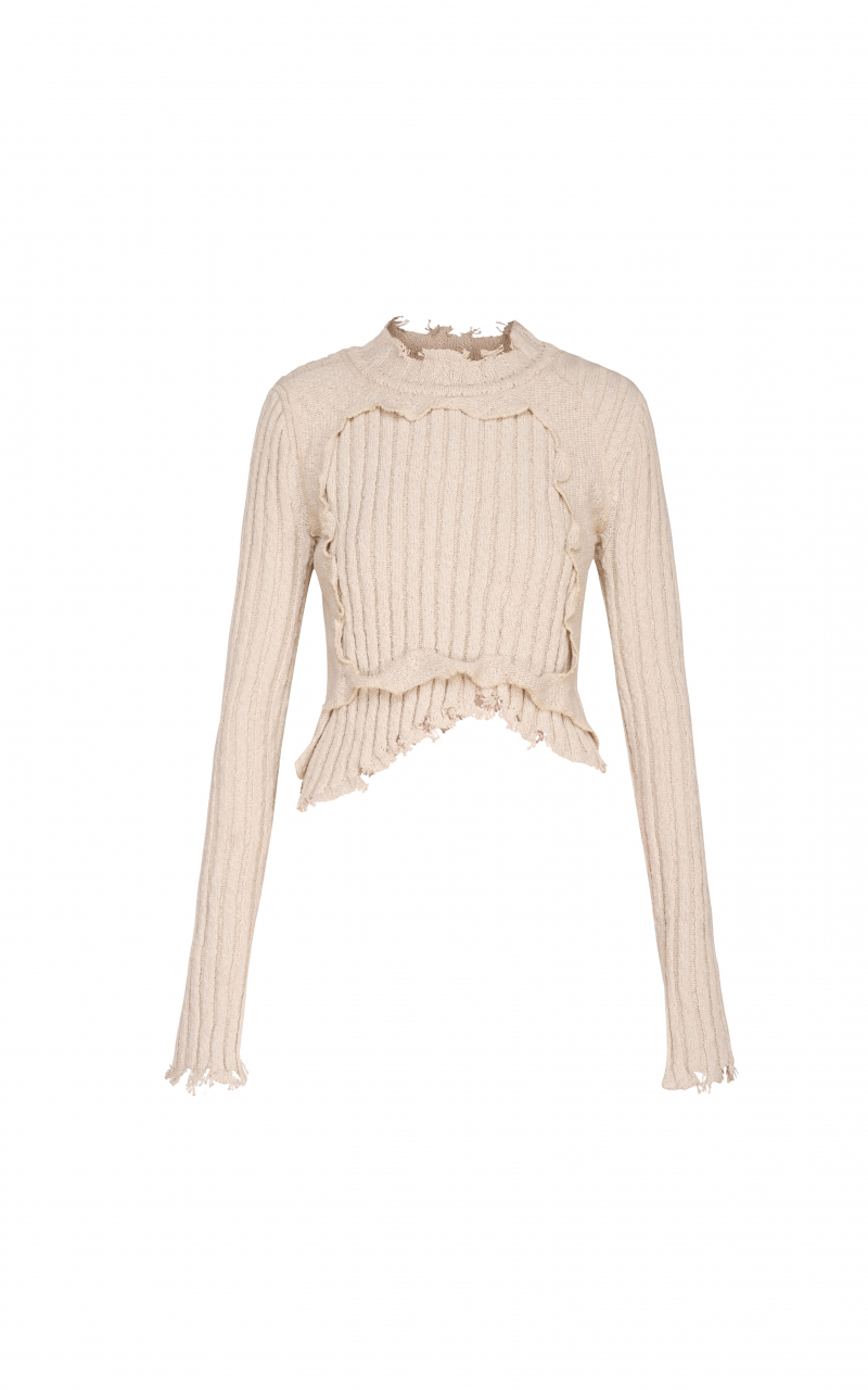 Item: mixed-knit cotton-linen jumper with cut-out overlay