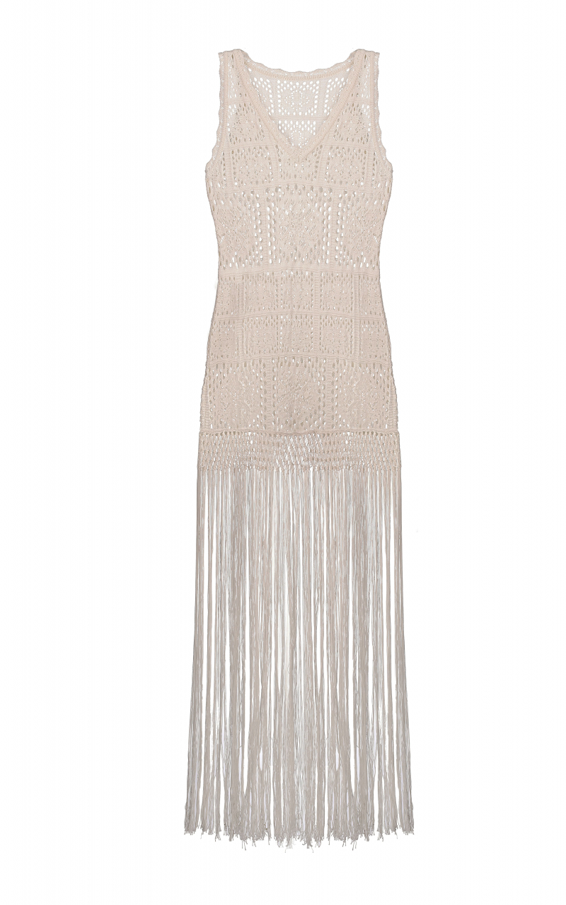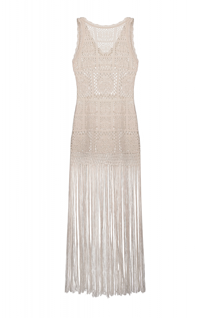 Item: Open knitwork sleveless mini-dress with floral knit pattern
