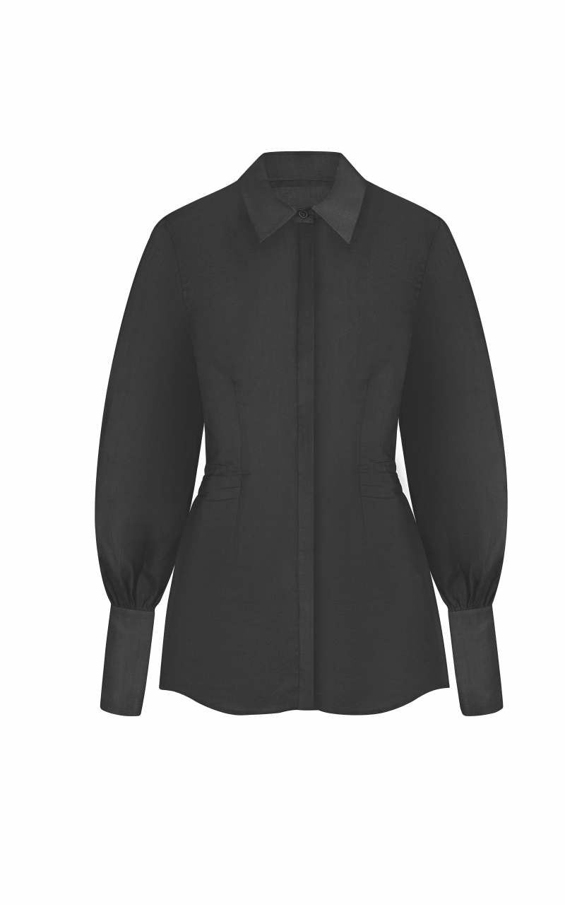 Деталі: об’ємні рукави з подовженими манжетами, прихована застібка на ґудзики