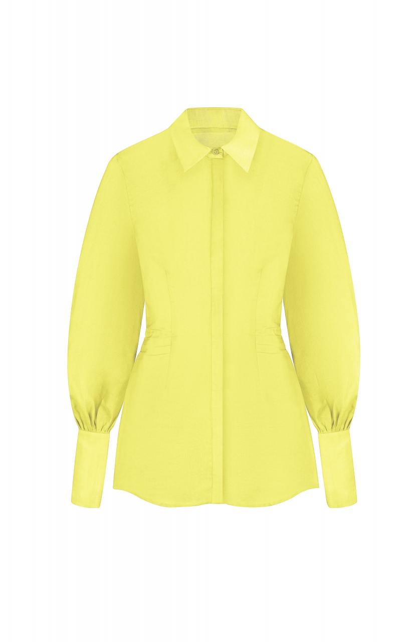 Деталі: об’ємні рукави з подовженими манжетами, прихована застібка на ґудзики