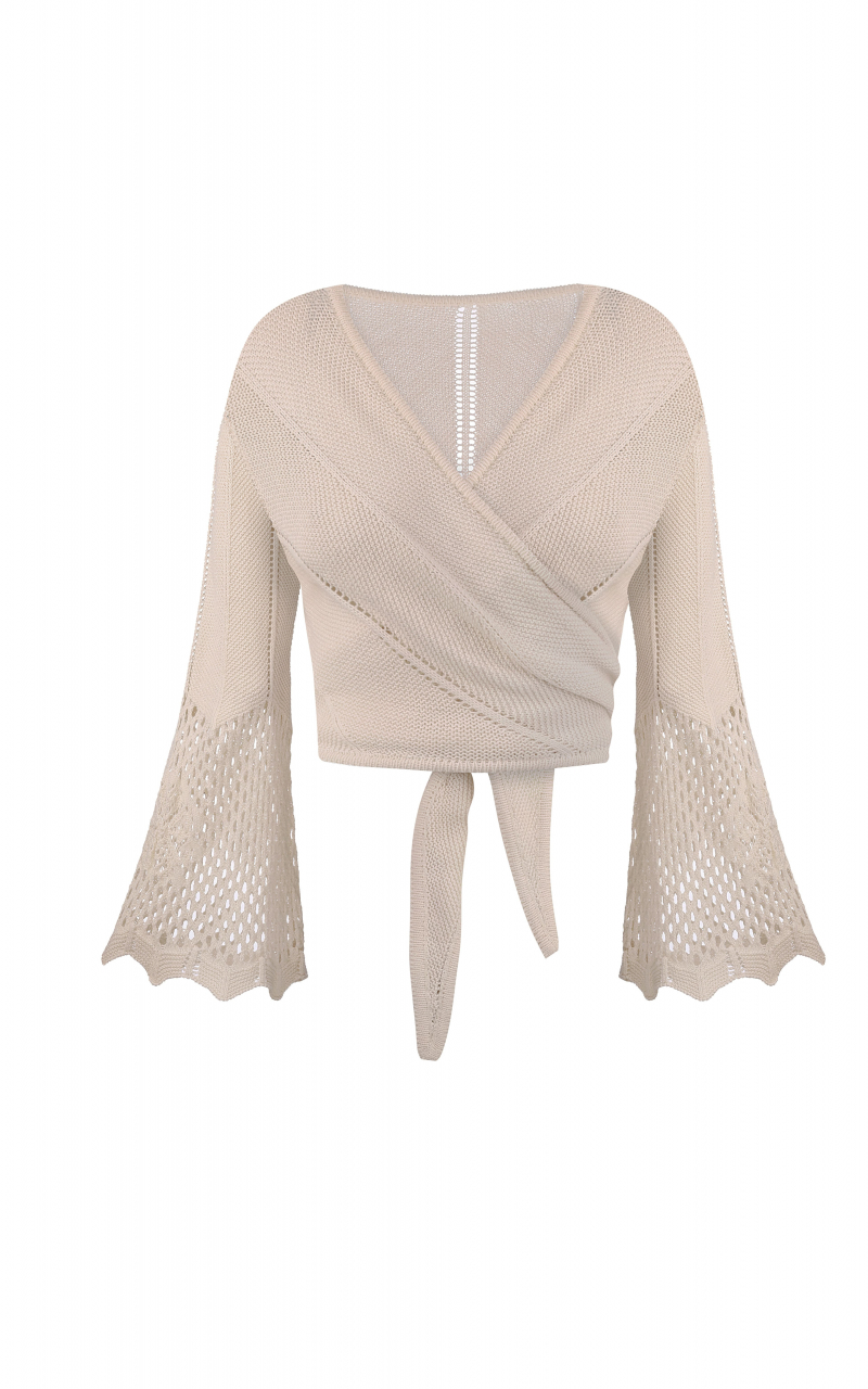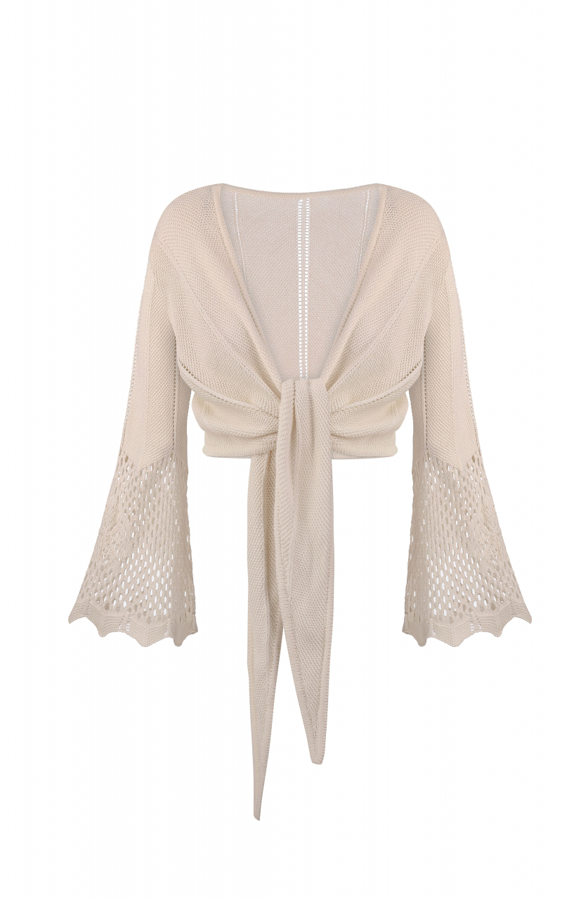 Модель: В’язаний топ у стилі болеро із зав’язкою спереду