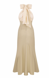 Деталі: панелі, що перехрещуються та зав’язуються у бант, овальною вставкою зі шлейфом і прихованою застібкою-блискавкою ззаду