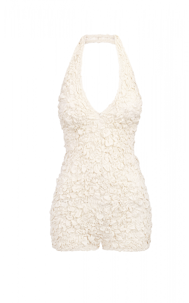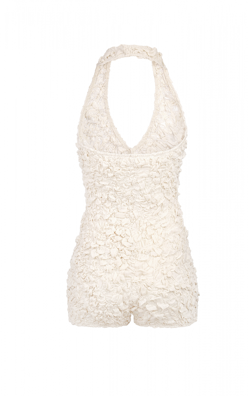 Модель: Короткий комбінезон з халтер-коміром і відкритою спиною