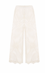 Модель: Штани з широкими штанинами з ажурної в’язки з квітковим в’язаним візерунком