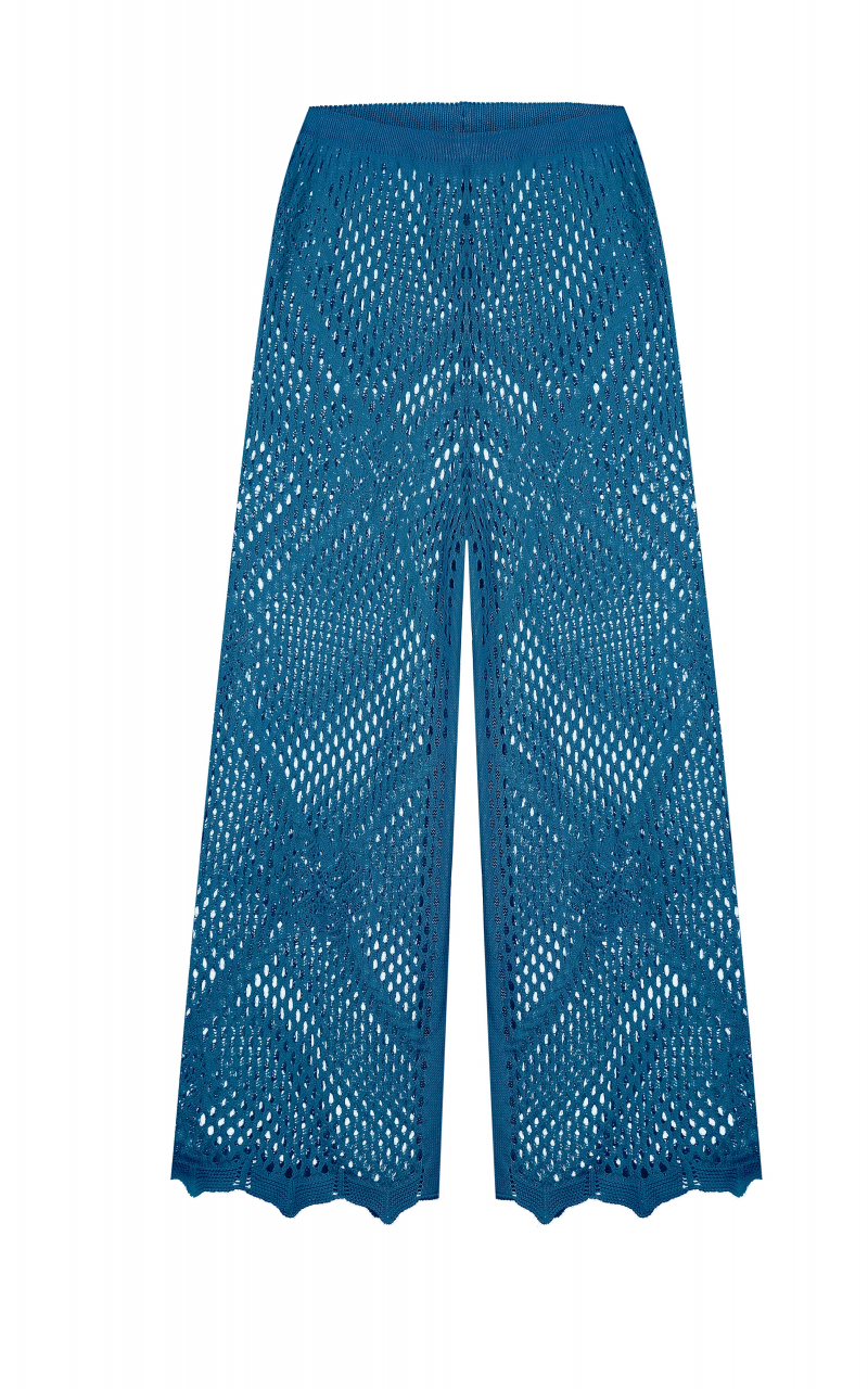 Модель: Штани з широкими штанинами з ажурної в’язки з квітковим в’язаним візерунком