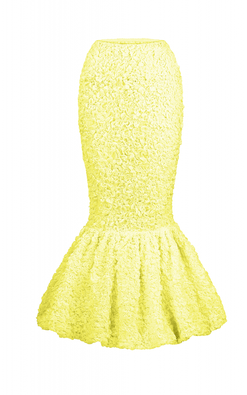 Модель: Спідниця довжини до щиколотки з розкльошеним силуетом «русалка» та об’ємним пишним низом з еластичним поясом
